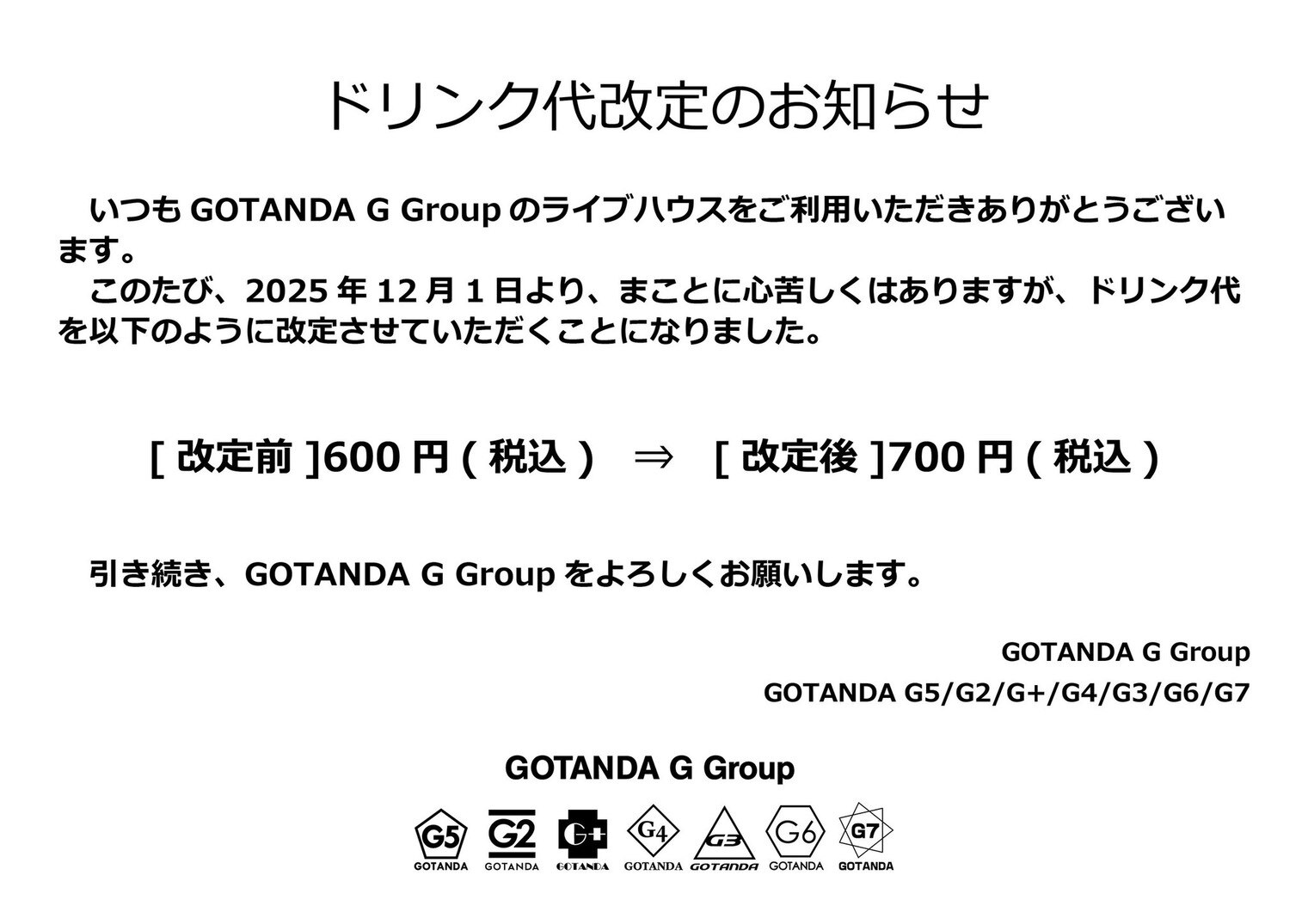 イベント会場規定の変更によりドリンク代が以下に変更となります。